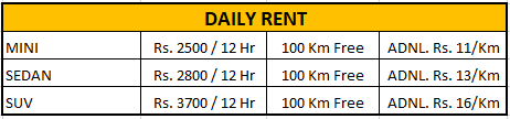 - Per Km AC - Rs. 23 / Non AC - Rs. 22 per km